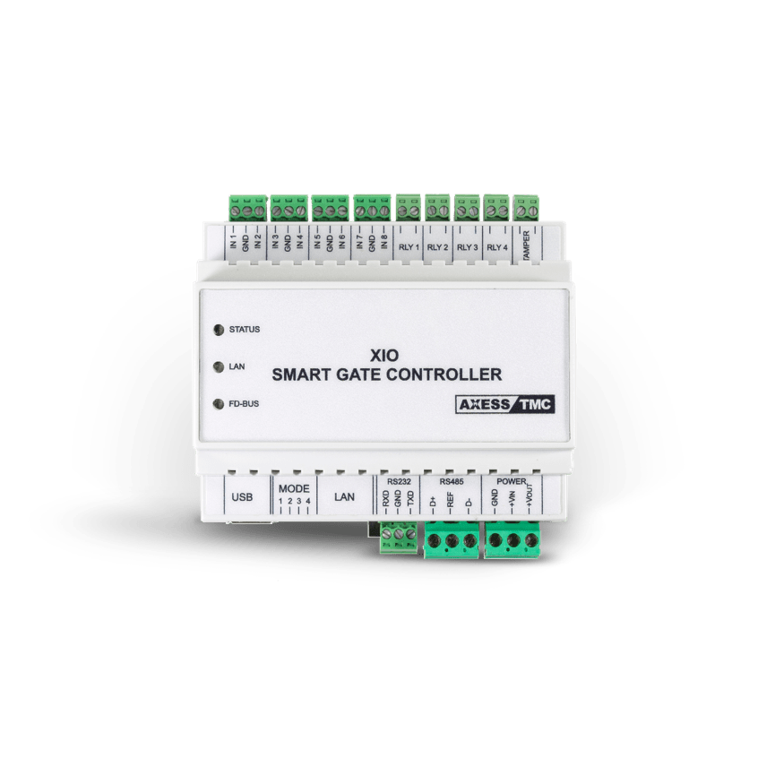 XIO è un potente controllore Ethernet dotato di web server e funzioni FTP (sia server che client) che consente di gestire via web un sistema di controllo accessi in modo semplice ed intuitivo. XIO è in grado di gestire 8 varchi e 16 dispositivi ( BLE, RFID, biometrici, pinpad e lettori con display per applicazioni di Rilevazione Presenze). I criteri di accesso e controllo fisico sono definiti indipendente per ogni varco (porta battente o tornello).
